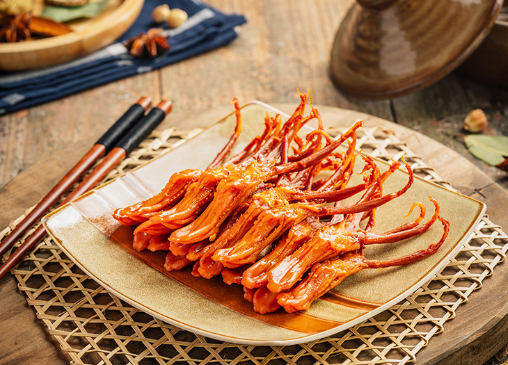 獨特工藝,蒸汽鹵制,醬鹵收汁,鎖住營養。28種植物香辛料,醬香鮮辣,締造全國特色風味醬鴨。